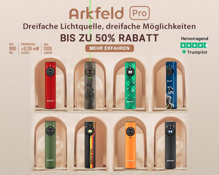 Olight Arkfeld Pro Klasse 1 EDC Taschenlampe mit UV Licht Laser und Weißlicht