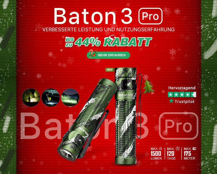 Die Baton 3 Pro ist die verbesserte Version der S2R Baton II. Sie ist mit bis zu 1500 Lumen 30% leistungsstärker. Im Vergleich zum Abstandssensor der letzten Generation wurde der neue und technologisch fortschrittliche versteckte Sensor entwickelt, um die Lichtleistung der Taschenlampe im tichen Gebrauch zu erhöhen und die Helligkeit automatisch zu reduzieren, wenn der Sensor ein Hindernis in der Nähe erkennt. Dank der beiden Farbtemperäglatur-Varianten, Kaltweiß und Neutralweiß, wird die Taschenlampe einer Vielzahl von Anforderungen gerecht und eignet sich für jedes Szenario.