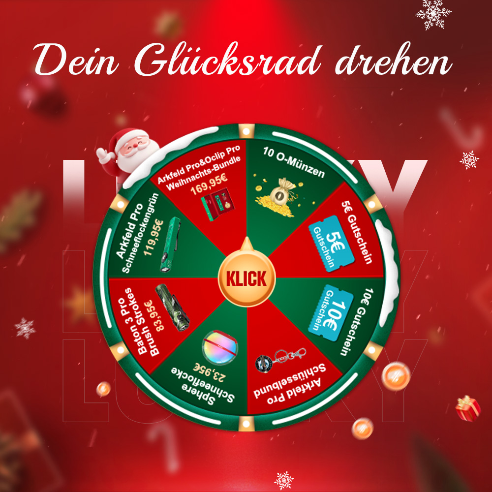 Glücksrad: Vom 11.12 03:00 Uhr bis 17.12 um 14:00 Uhr hat jede Person die Möglichkeit, das Glücksrad zu drehen,um den Hauptpreis zu gewinnen.
