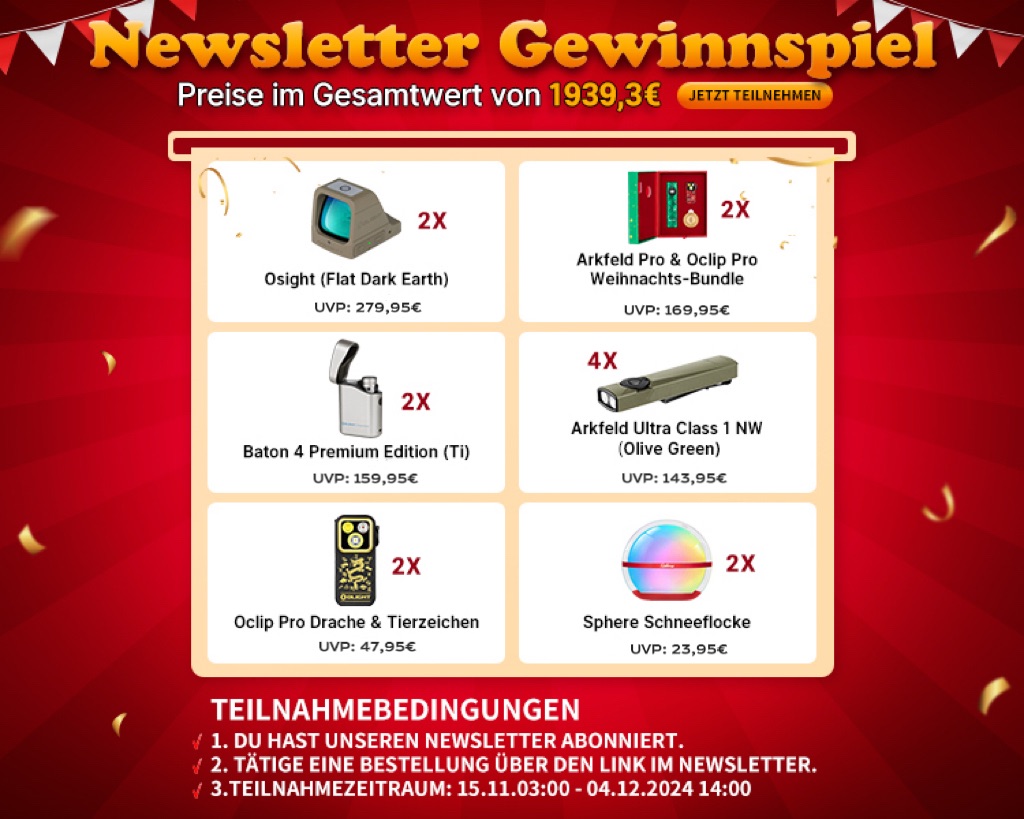 | Taktische Taschenlampen | 28.11.2024 03:00:00~02.12.2024 03:00:00 |