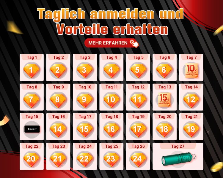 Wenn du den Platinstatus oder höher hast, erhältst du kostenlos einen Olight Patch im Bereich der O-Fan Club Angebote. Erfahre mehr über unsere neuen Produkte!