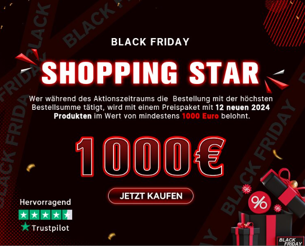 Während des gesamten Black Friday Sales können Kund*innen, die den höchsten Gesamtbestellwert erreichen, ein Geschenkpaket mit 12 neuen Produkten aus dem Jahr 2024 mit einem Gesamtwert von mindestens 1000€ gewinnen.