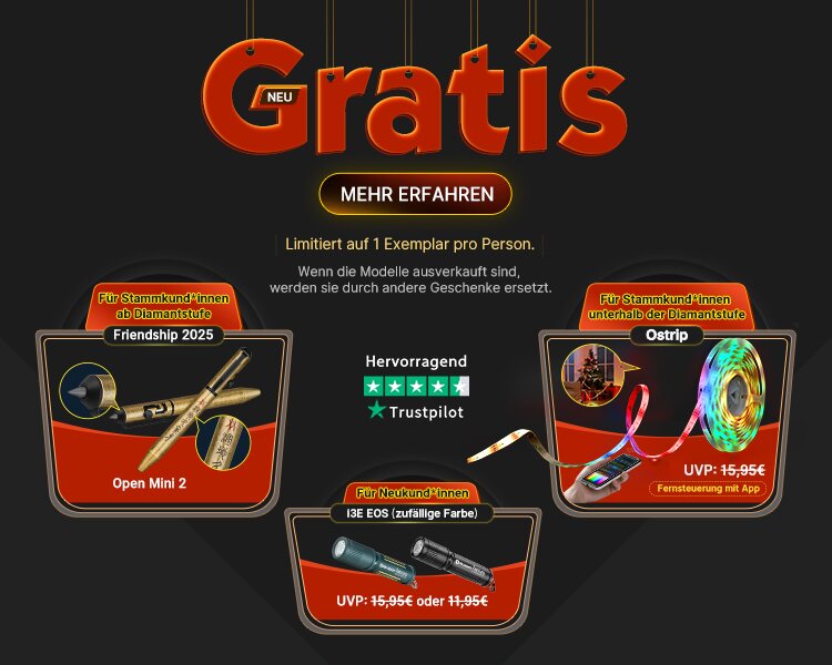 | EDC Taschenlampen | 21.11.2024 03:00:00~25.11.2024 03:00:00 |