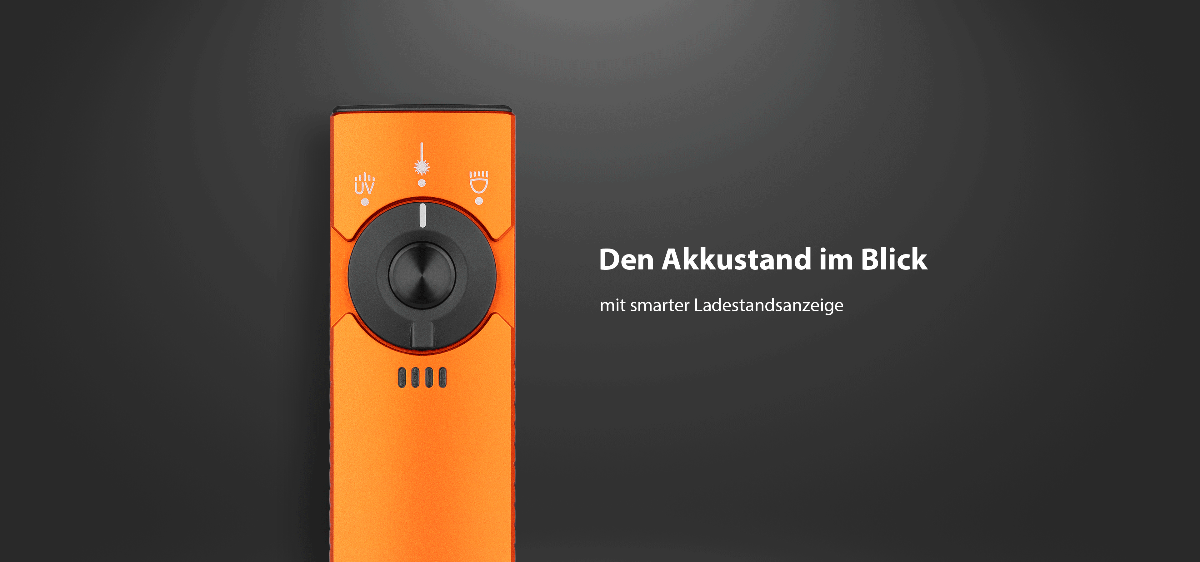 Um Benutzern die Verwendung der Arkfeld Pro zu erleichtern, ist das Produkt mit einer fünfstufigen Batterieanzeige ausgestattet, sodass man den Batteriestand jederzeit überwachen können. Dieses intelligente Design ermöglicht es, die verbleibende Batterieleistung sofort zu überprüfen und so peinliche Situationen unzureichender Leistung in kritischen Momenten zu vermeiden. Die Hinzufügung der Batterieanzeige macht die Arkfeld Pro intelligenter, sodass sich Benutzer bei der Verwendung wohler fühlen.