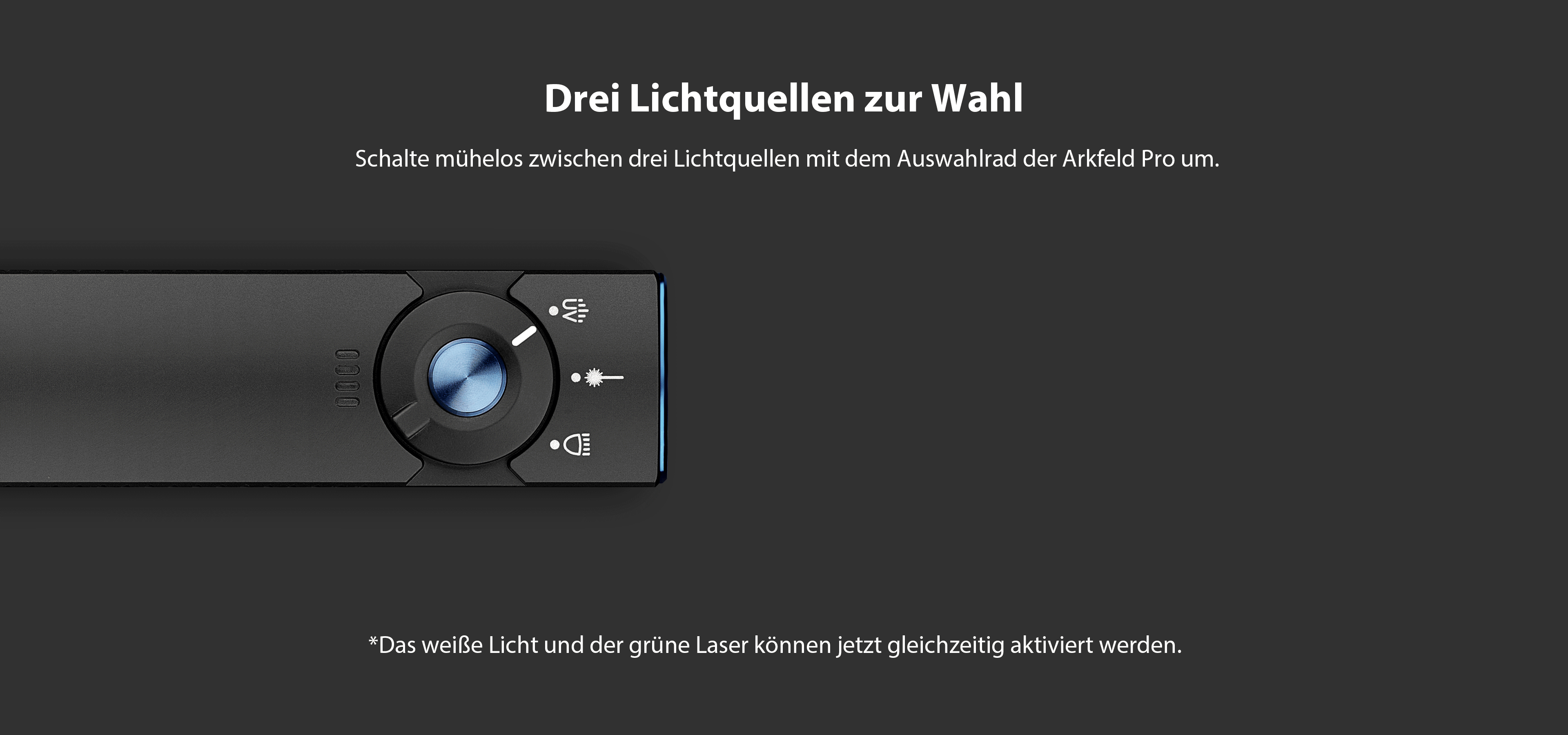 Die grüne Laserfunktion der Arkfeld Pro ist nicht nur praktisch, sondern unterstreicht auch die Innovation und Vielseitigkeit des Produkts. Ob bei Outdoor-Abenteuern, bei der Arbeit oder im Alltag, die grüne Laserfunktion der Arkfeld Pro bietet leistungsstarke Unterstützung und macht Ihre Aktionen präziser und effizienter.