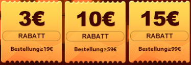 Als kleines willkommensgeschenk erhältst du drei Gutscheine im Wert von 28€. Das exklusive Geschenkpaket wurde in dein Konto übertragen. Die Gutscheine können für alle Produkte in unserem Online verwendet werden und das Geschenk wird automatisch an der Kasse hinzugefügt.