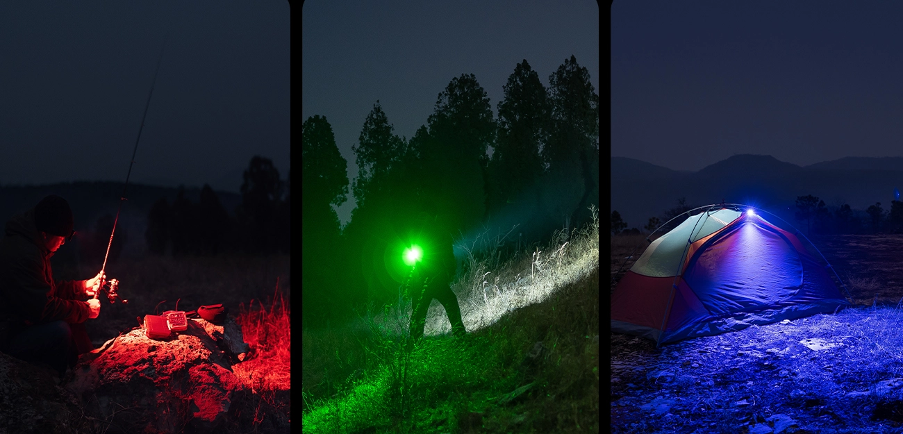 - Outdoor & Camping: Nutze das weiße Licht für die Pfadsuche, Rot zum Erhalt deiner Nachtsichtfähigkeit, Grün zum blendfreien Lesen von Wanderkarten und Blau oder UV zum Aufspüren von Tierspuren im Wald.